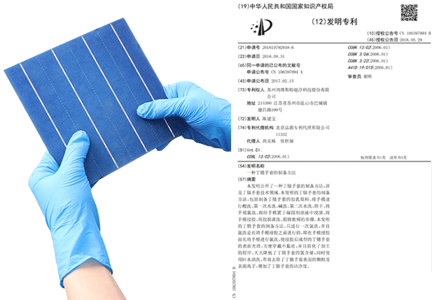 手套經(jīng)過(guò)特殊工藝處理,通過(guò)驗(yàn)證將手套放置氮?dú)夤癞?dāng)中80H,手套接觸產(chǎn)品無(wú)任何氧化情況,經(jīng)權(quán)威機(jī)構(gòu)檢測(cè)氯元素及硫元素完全符合接觸電池片標(biāo)準(zhǔn),且不會(huì)在電池片上面留下任何指印。